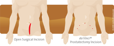 Robot-assisted laparoscopic RADICAL prostatectomy (A.K.A. daVinci prostatectomy or robotic prostatectomy) is performed for patients with a diagnosis of PROSTATE CANCER. It is performed through 5-6 keyhole size incisions. Carbon dioxide gas is used to "insufflate" or fill up the abdomen to provide a working environment inside the body. A special robotic video camera and robotic instruments are placed inside the body through these dime-sized incisions. Dr. Shah controls all aspects of the robot from a surgeon's console. Ultimately the prostate is placed inside a bag and removed from one of the incision sites. The urinary tract is reconstructed with delicate sutures by bringing the bladder down to the urethra. A Foley catheter is left in place to allow the connection to heal properly.